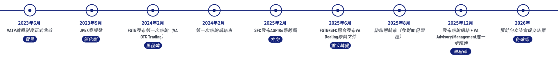 2025年12月的咨询总结确认,香港将在AMLO框架下建立四个独立的VA牌照制度,形成完整的虚拟资产监管生态。VA Dealing是其中最先推进的牌照类型。